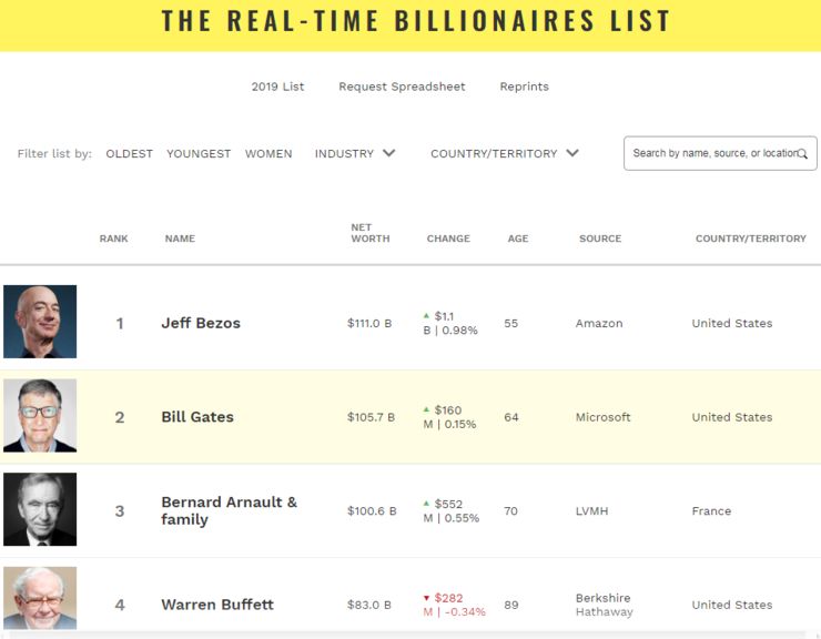 不过,截止雷锋网发稿前,亚马逊的股价也出现了小幅度回升,导致 Jeff Bezos 又重新回到世界首富的位置——目前 Jeff Bezos 的净资产为 1110 亿美元,Bill Gates 为 1057 亿美元,双方差距只有 53 亿美元。考虑到他们的财富都各自依赖他们各自创办的公司,而二人的财富量也非常接近,这意味着,微软和亚马逊的股票变动可以很容易地影响到世界首富的人选。