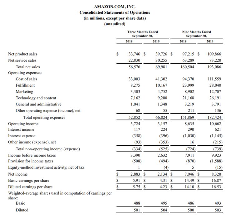 雷锋网消息,当地时间 10 月 24 日,电商巨头亚马逊发布了截止 2019 年 9 月 30 日第三季度财报。从财报发布之后的股价变化来看,这并不算是一份令投资者满意的财报——在 10 月 24 日美股收盘后,亚马逊的股价在盘后交易中跌去了 6.73%,报收于 1661 美元。