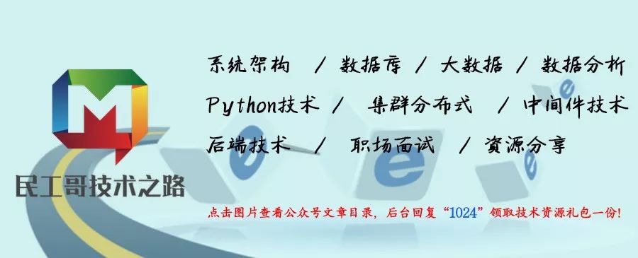 关注 民工哥技术之路 微信公众号对话框回复关键字:1024 可以获取一份最新整理的技术干货:包括系统运维、数据库、redis、MogoDB、电子书、Java基础课程、Java实战项目、架构师综合教程、架构师实战项目、大数据、Docker容器、ELK Stack、机器学习、BAT面试精讲视频等。