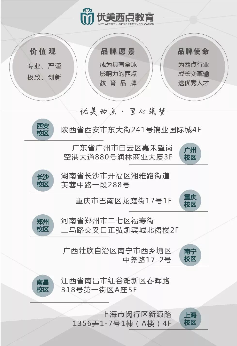 西安优美西点是一家高端全能型西点人才培训教育机构,在全国一二线城市开设了多所直营院校。50万优美学子遍布全国各地,荣获“中国最具价值职业教育品牌”“2018影响力职业教育机构”“2018年度社会信赖职业教育品牌”。