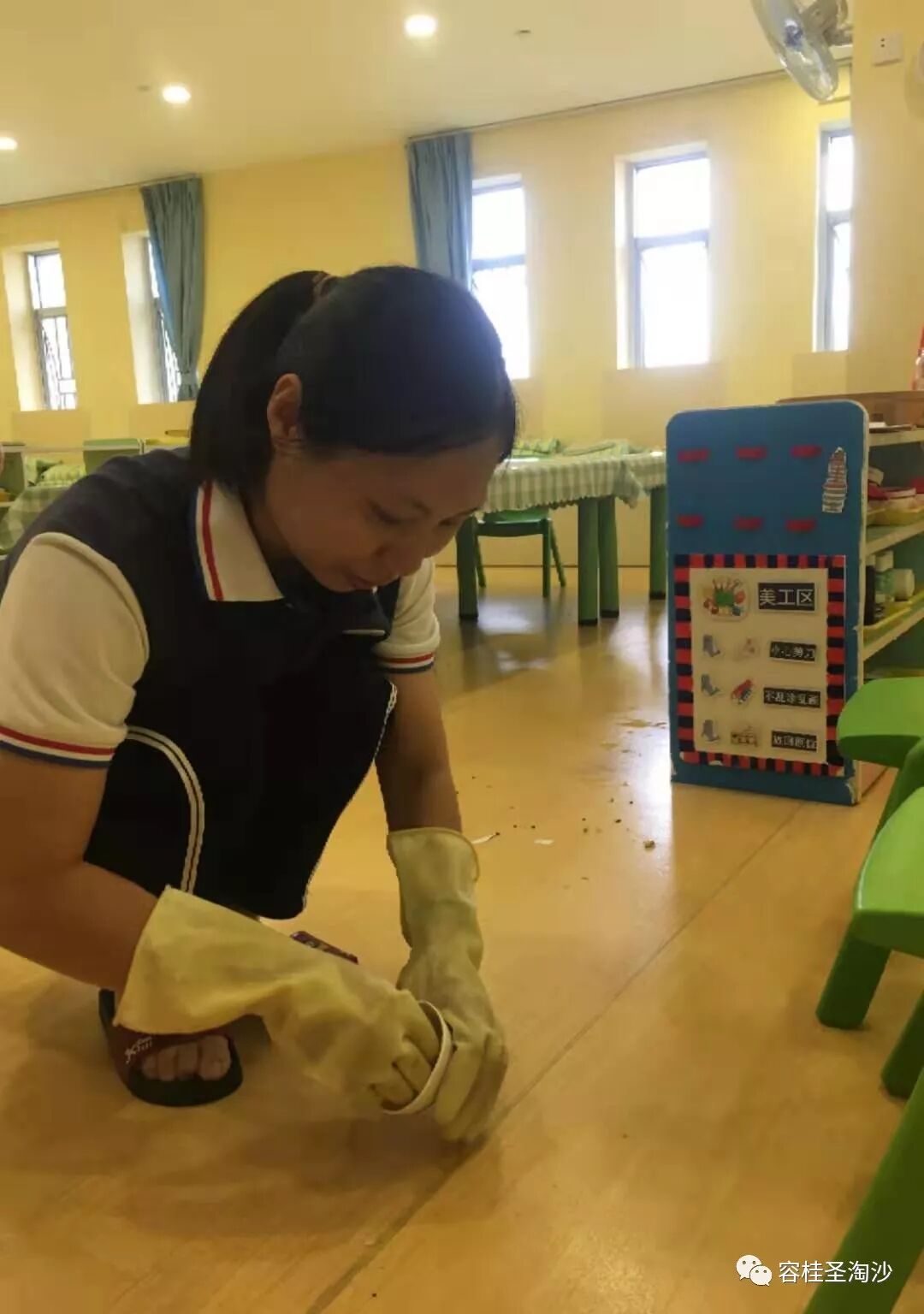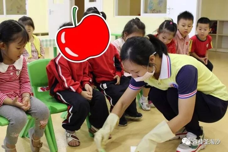 配班老师将其余小朋友撤离事发现场两米外,保育老师对事发现场进行消毒处理。