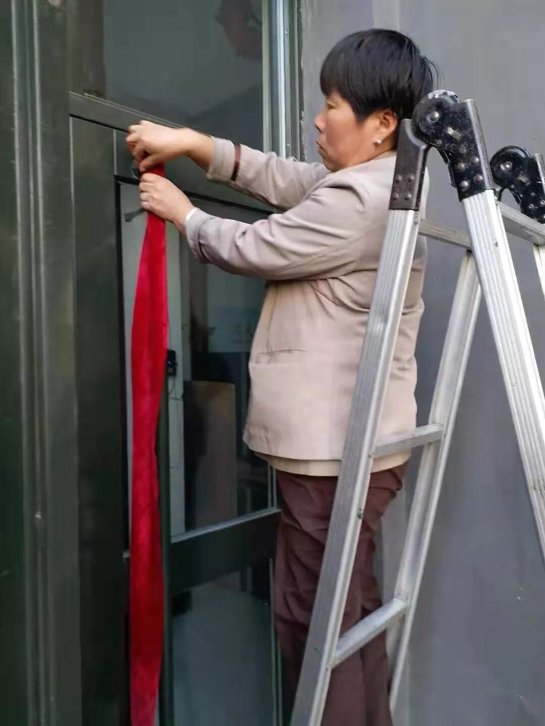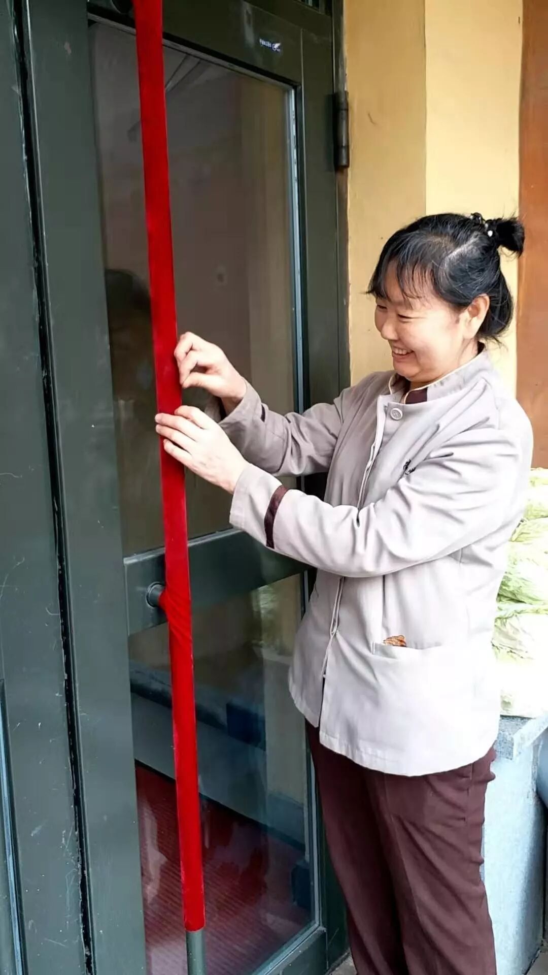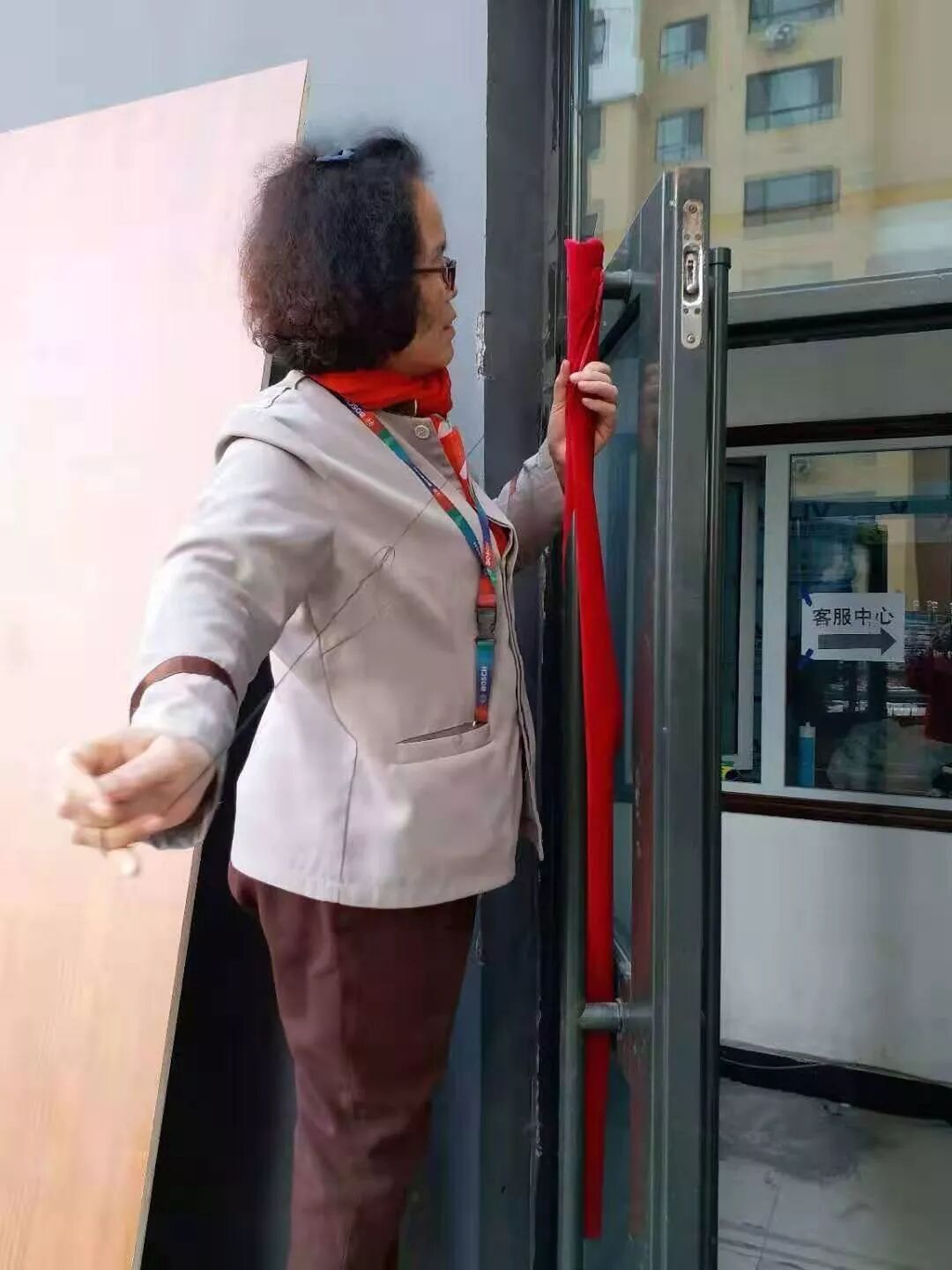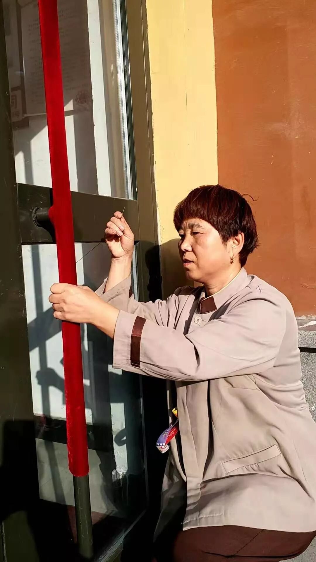 保洁员缝制单元门把手套