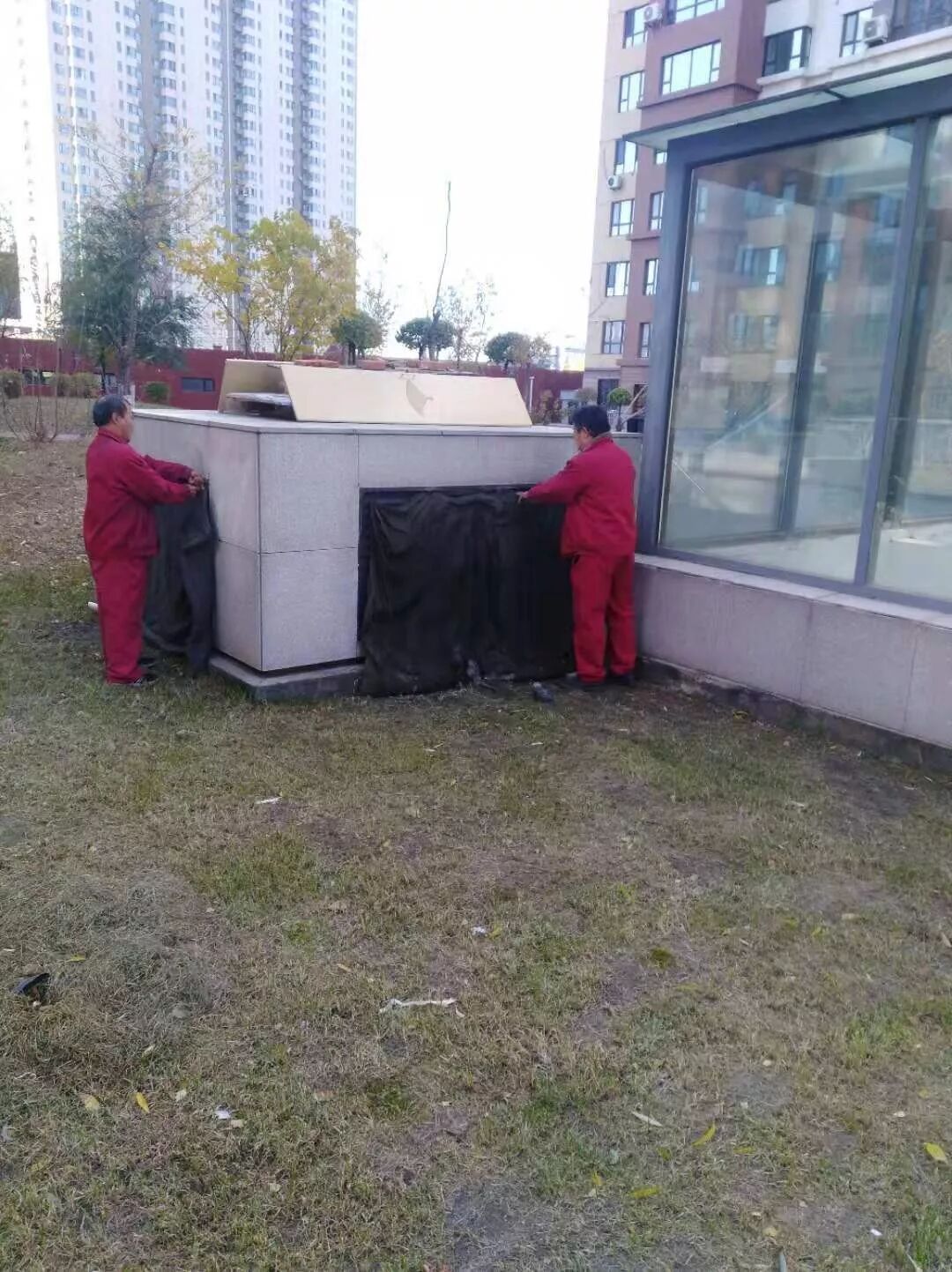入冬前,物业管理处做好各项准备工作,检查设备设施,维修地库门、单元门等,做好防寒保暖工作园林苗木过冬工作。保洁更换所有单元门地毯,缝制单元门门把手,防止滑倒和冰手。