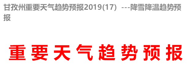 地 名天 气最 高℃最 低℃石 渠阴有中雪2-5德 格阴有大雨122色 达阴有大雪6-2白 玉阴有中雨135甘 孜阴有大雨103炉 霍阴有大雨113新 龙阴有中雨132道 孚阴有中雨165丹 巴阴有中雨149九 龙多云有阵雨147康 定阴有中雨63泸 定多云有阵雨159雅 江阴有中雨187理 塘阴有中雪90巴 塘阴有中雨188得 荣多云有阵雨1910乡 城多云有阵雨168稻 城多云有阵雨102