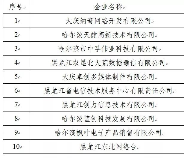 2019年黑龙江省互联网成长型企业10强榜单
