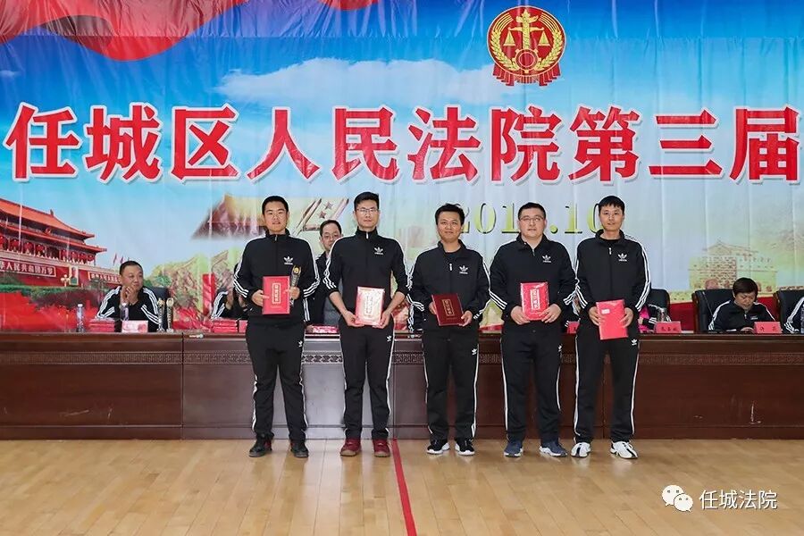 10月25日下午,任城法院第三届运动会经过紧张激烈的角逐,顺利完成了各项赛事,颁奖典礼和闭幕式在任城区文体中心隆重举行。党组书记、院长王爱新及院领导班子全体成员出席闭幕式并为获奖运动员颁奖,全院干警在团结、欢乐、和谐的气氛中,共同庆祝运动会取得圆满成功。
