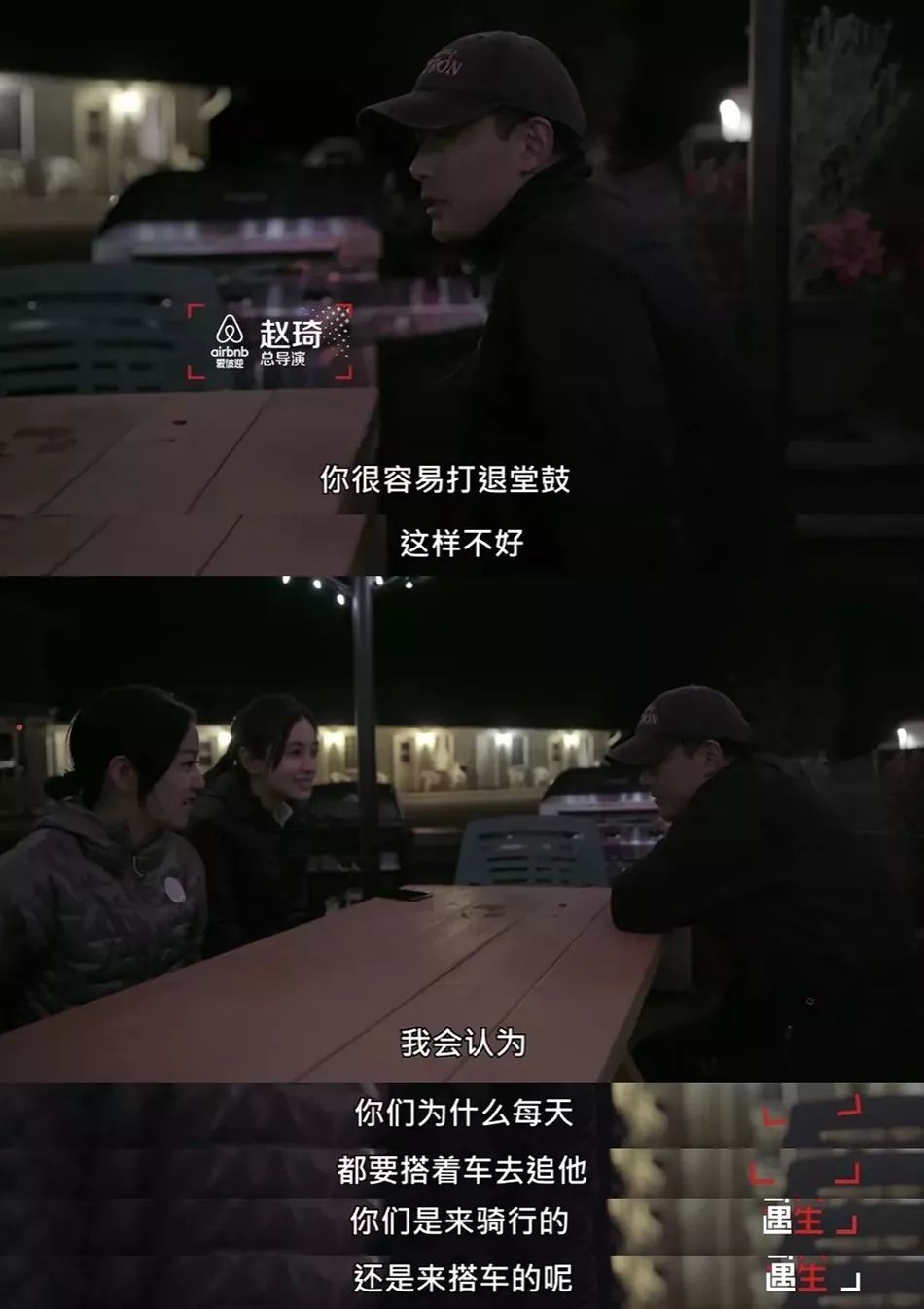 事实上,关于嘉宾们不按预设骑行,每天搭车追赶老徐的行为,导演赵琦也曾出面劝导过(虽然并没有什么卵用)。