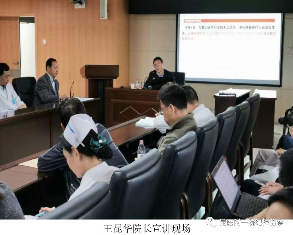 全体院领导通过对行业不正之风反面典型以案说法、明纪警示,剖析违纪违规思想根源,要求全院党员干部职工严于律己守住“底线”,干净做人不越“红线”,自觉遵守道德规范和医疗规范。