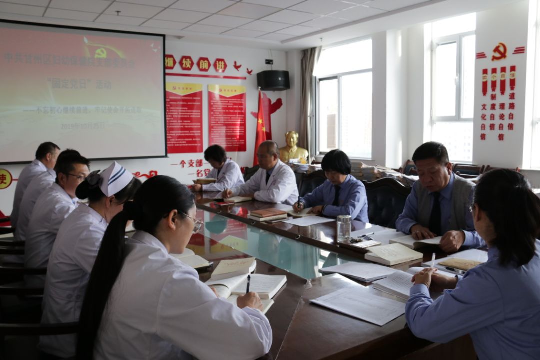 为切实严肃和规范党的基层组织生活,扎实做好党员经常性教育,根据《关于进一步规范落实“固定党日”制度的通知》要求,全面落实固定党日活动,2019年10月25日,甘州区妇幼保健院开展了以“不忘初心继续前行,牢记使命开拓进取”为主题的固定党日活动,全体党员、入党积极分子及医院中层干部参加了此次活动。