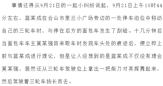 一起轻微的刮碰事故通过协商可以小事化无却因蓝某一念之差将自己送进了班房但是世界上唯一没有的药就是“后悔药”蓝某成也将会为自己的热血冲动付出沉重的代价