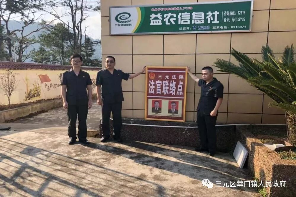 10月24日下午,三元法院法官联络点在莘口镇西际村正式挂牌成立,莘口镇党委副书记施慧敏、莘口法庭庭长张朝炼参加挂牌仪式。