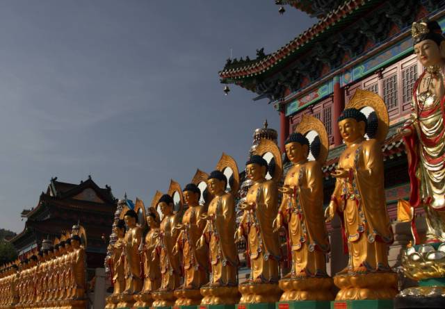 10:00-11:00前往参观【北山古寺】。北山古寺位于广东清远阳山县城之贤令山麓,始建于明嘉靖年间,距今已有460多年历史,是连阳地区唯一一间佛教寺院。寺内总共有上千座金碧辉煌的金身佛像安放在寺内的各个大殿、广场上,是亚洲拥有最多佛像的寺庙。如今,扩建后的北山古寺,沿寺院中轴线而上,依次为牌坊、山门,山门内侧设天王殿、罗汉广场,罗汉广场两侧为钟鼓楼、居士林和斋堂。正中为大雄宝殿,继续拾阶而上,只觉视野顿然开朗,便到了西方极乐世界的广场。极乐世界中央为西方三圣、一个巨型的莲花喷水池、九品莲花宝座等,两旁为观音殿、藏经楼、方丈室和48尊阿弥陀佛,山顶为佛塔。
