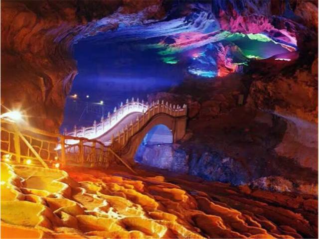 天然溶洞配合灯光,摇曳生姿,沁凉直达心脾