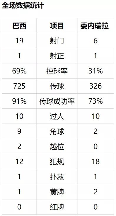 美洲杯A组第2轮在萨尔瓦多又赛1场,巴西0比0被委内瑞拉逼平,与稍前取胜的秘鲁同积4分。全场巴西只有1次射正,菲尔米诺、库蒂尼奥和替补出场的热苏斯将球打进,但均被判无效。