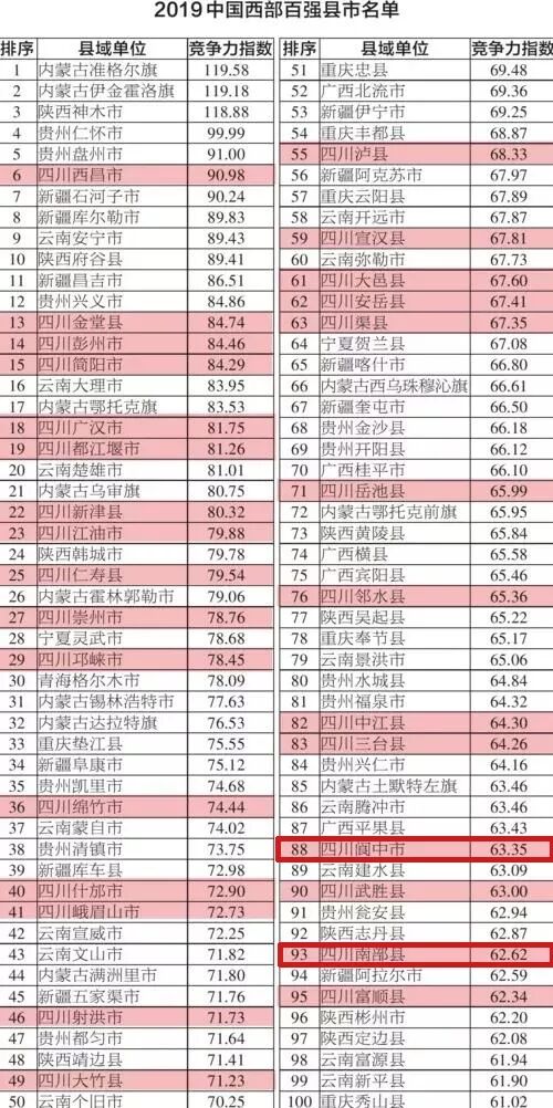 喜讯!2019中国西部百强县市揭晓,南充上榜的是——