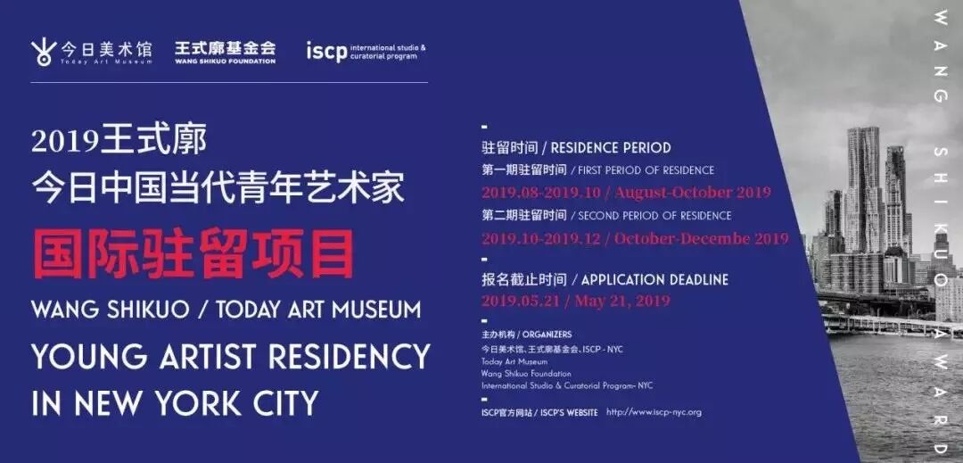 "2019王式廓今日中国当代青年艺术家国际驻留”项目由今日美术馆发起,王式廓艺术基金会、今日美术馆和ISCP联合主办,致力于帮助有艺术才华、勤奋执着,并在艺术造诣上有一定成果(年龄在30-45岁之间,从事艺术创作十年或以上)的青年艺术家,为他们提供更加国际化的创作、展示与交流的平台,同时也让更多人了解、参与当代艺术,推助中国当代艺术事业的发展。