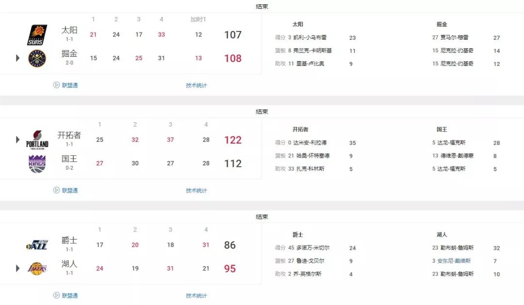最终湖人队主场95-86战胜爵士,戴维斯21分7篮板2抢断5封盖,丹尼尔斯15分;爵士队米切尔24分3抢断,康利13分,穆迪埃12分,尼昂10分。