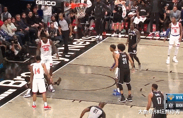 当时欧文在一次上篮后不中,倒在场地边上,而球也是正好落在欧文的手里,这时候他落入到尼克斯球员的围堵当中无法传球,而旁边的尼克斯球员波蒂斯也是直接准备从欧文手里抢球,两人顿时胳膊缠绕在一起,身高2米11体重224斤的波蒂斯力量更足,他几乎将球和欧文一起从地板上拽起来,这个动作也是引起了篮网其他球员的强烈不满。