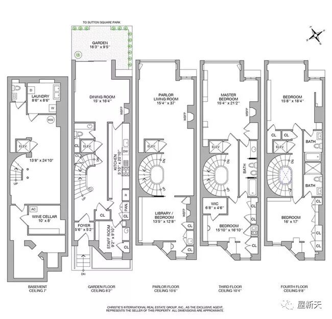 提起贝聿铭先生,一定会想到法国卢浮宫的玻璃金字塔,这座建筑从最初被人质疑到最后被世人赞许,反映出贝聿铭先生对建筑设计的充分自信。在80年代的法国,人们多数仍以古典建筑为傲,是贝聿铭先生通过自己的设计经验积累,大胆而坚持了自己的创新想法,才有了今天大家看到的卢浮宫金字塔。根据贝聿铭先生在纽约的购房时间,以及家中装修设计来推测,或许卢浮宫金字塔的构思雏形在自己家中早已得到实践运用。这座位于曼哈顿中城紧邻东河河畔的独栋别墅是贝聿铭先生和太太Eileen共同生活45年以上的家。房间内的所有装修设计,全部都是由贝聿铭先生完成。这栋出售的故居已上市2天,有条件的买家值得考虑,机会难逢。这栋联排别墅本身建于1899年,贝聿铭先生于1974年买下。整块地16*51平方英尺,建筑物占地16*49平方英尺,室内使用面积3848平方英尺,约357平方米。周围有14座类似的联排别墅成U形包围在萨顿(Sutton)公园,这里形成了私人公园,面朝草坪绿地,宽阔的东河,皇后大桥和浮在河中央的罗斯福岛。无论身在落地窗后或站在园中,无论坐着或躺着,无论什么时间或怎样的角度,眼前的景色都会构成一幅幅油画。现在的这14座别墅主人,各个也都是社会名流。贝聿铭先生的故居,最精彩的地方就是客厅中央的旋转楼梯及顶层中央的天窗,让人马上可以联想到卢浮宫的玻璃金字塔。优美的楼梯间通向每一层的各个区域,这里总共4层楼。一层主要是餐厅,厨房,管家员工室,以及通向私人花园的后院。二层主要是客厅和家庭图书馆。这一层的亮点主要在于塔斯马尼亚的橡木地板,和贝聿铭先生亲自设计的壁炉。室内陈列的艺术品,都将被佳士得公司拍卖。第三,第四层共有4间卧室,面朝河畔的一侧全部都是玻璃落地大窗。在这里是欣赏美景和沉思的好地方。别墅的地下室,被贝聿铭先生设计成豪华的温控酒窖,还有员工休息室。整套别墅里另装有电梯,2个化妆间等。全年地税57682美元。看得出这栋比贝聿铭先生还年长的别墅建筑依然熠熠生辉的矗立在纽约东河畔,外表没有过分的修饰,内部经过贝聿铭先生的精心设计后,全然一副简约现代气息,与楼龄十分不相符。就像贝聿铭先生说过的“没有一件优秀的作品是在瞬间完成的,是可以不经历时间考验的。无论是建筑还是艺术,它最真正的价值最终都只能交给时间去做评判。时间对我的创作来说至关重要。”