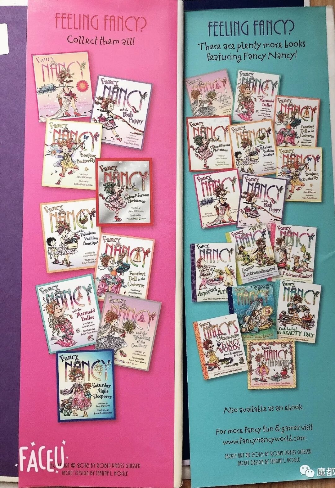 这套华丽丽的精装版是水晶从学校图书馆借回家的,因为我爱不释手,在我家呆了两周。从扉页的介绍来看,这套书应该有9本,包括获过大奖的Fancy Nancy and the Mermaid Ballet。