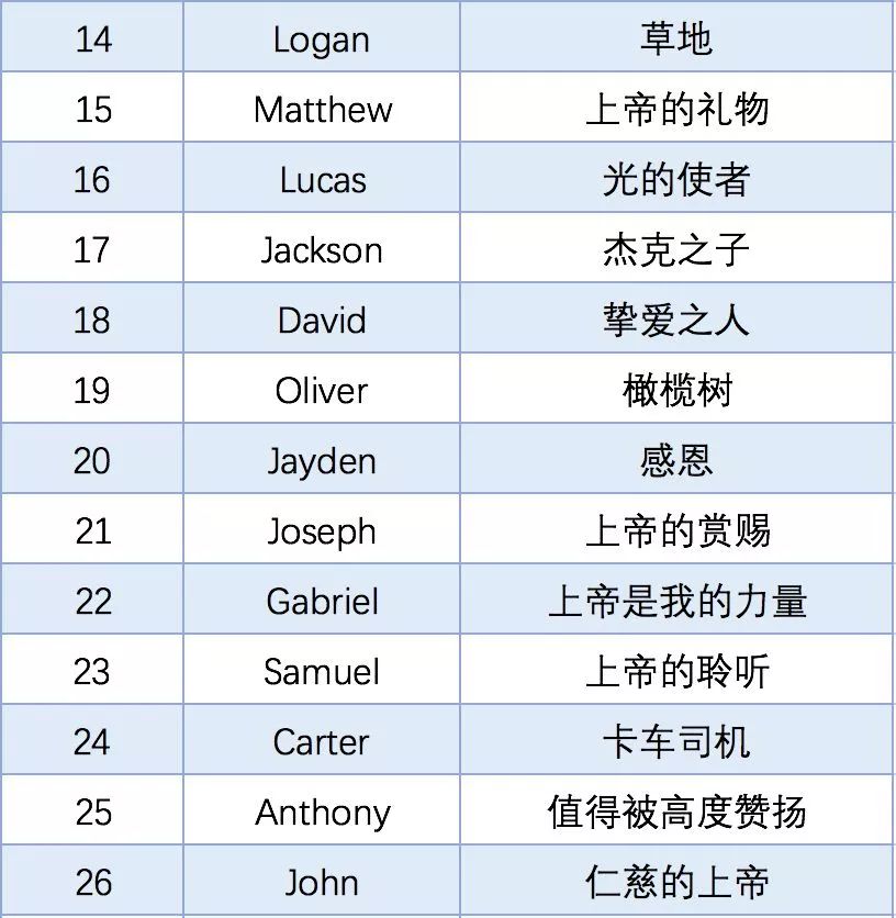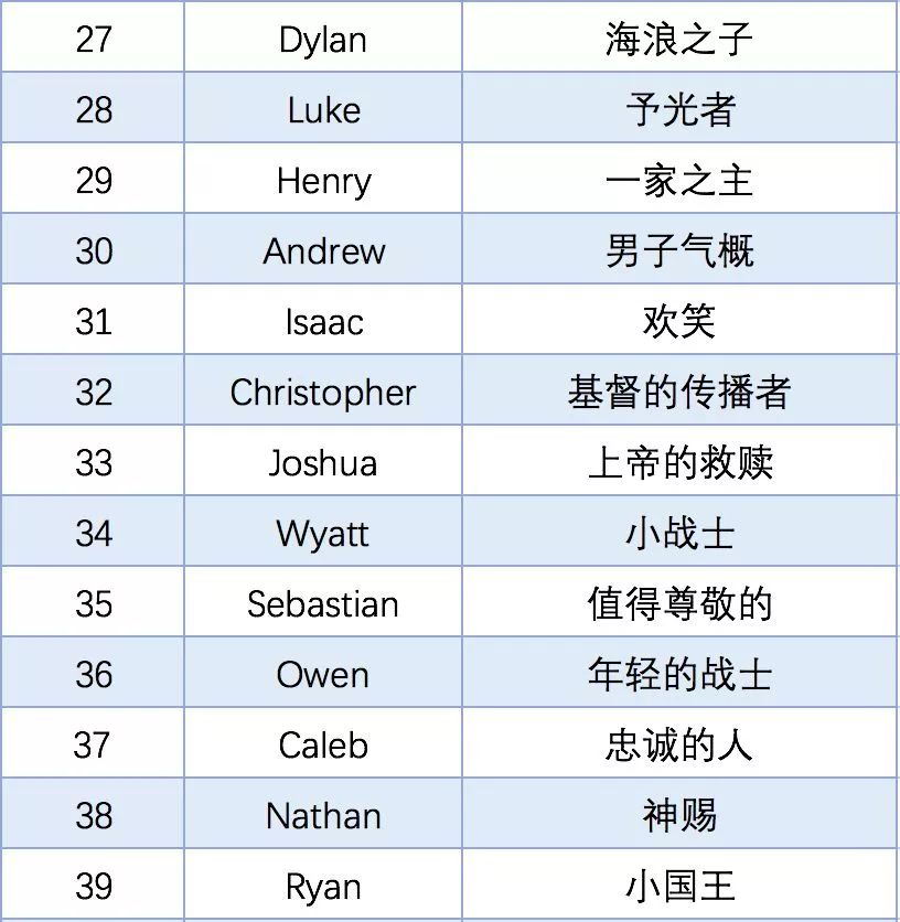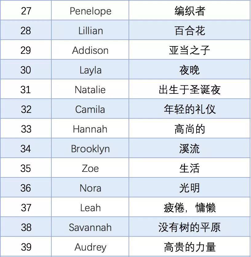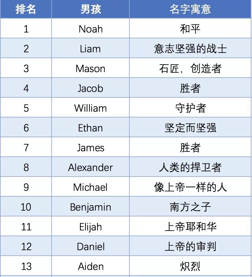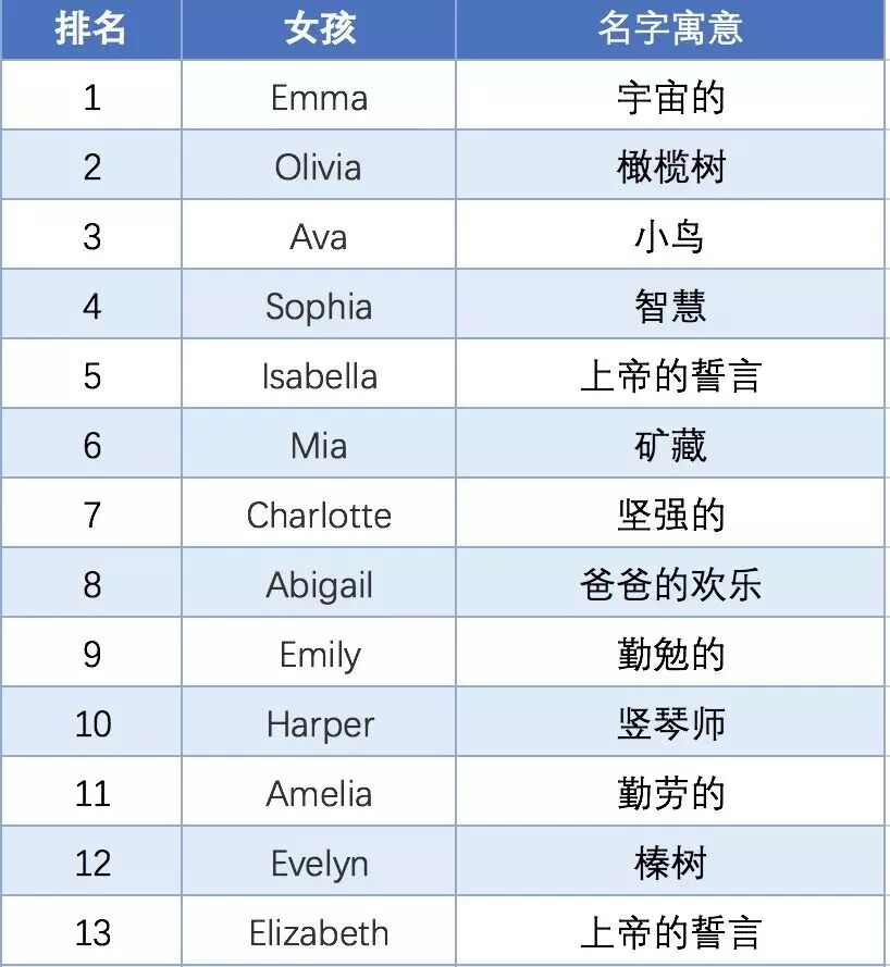 再为大家奉上2018年美国社会保障局公布的Top50英文名榜单,希望还在为起英文名而头疼的同学可以从中找到一些灵感。