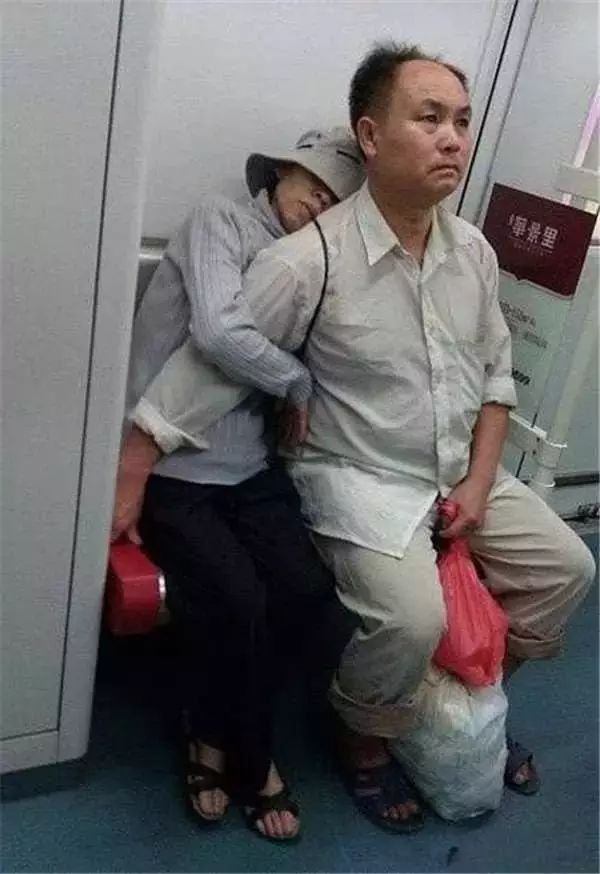 22地铁上男人伸出臂膀给妻子依靠让她可以安稳睡觉这个姿势保持了一路