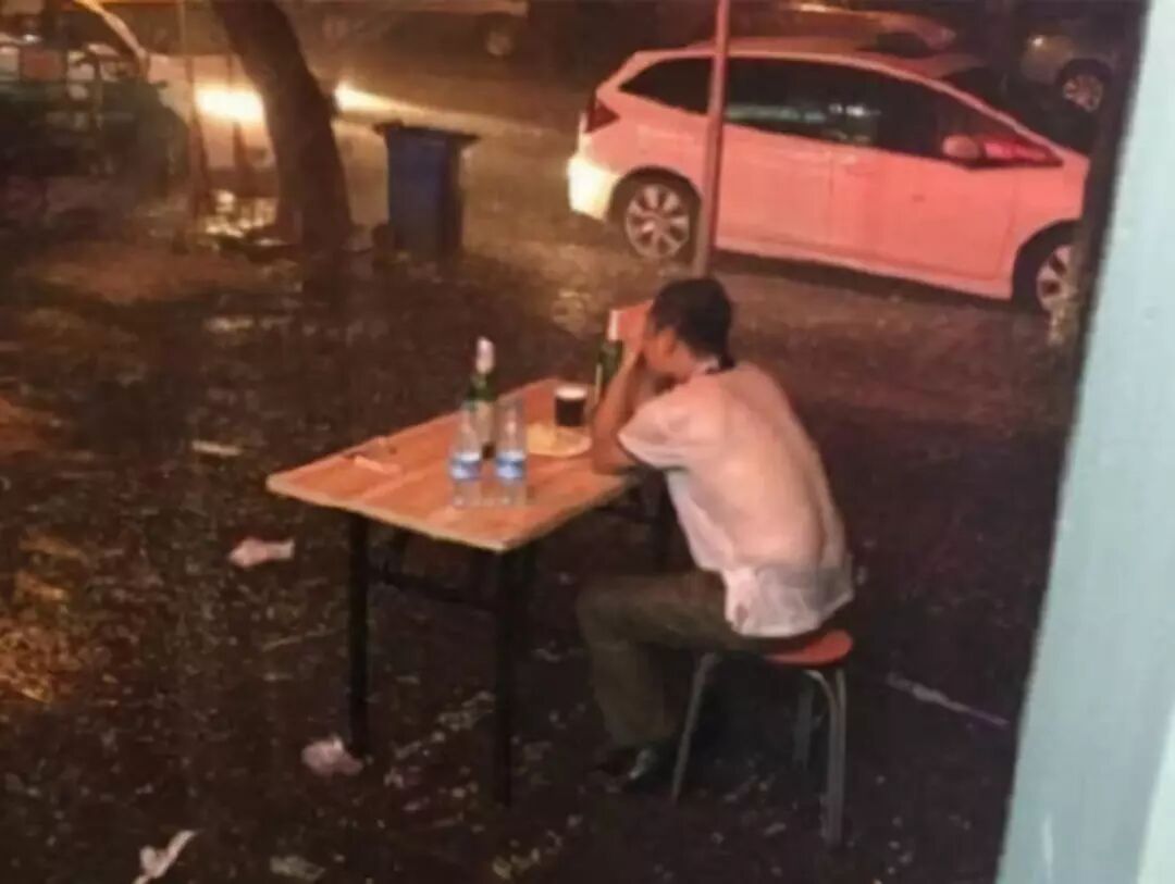 29一个男人坐在路边的大雨中痛哭虽然浑身湿透了但好像他对一切也都无所谓了