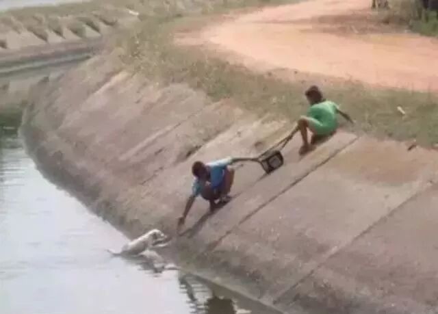 15两个小男孩手拉手救了落入水中的狗狗孩子的心总是无比善良的