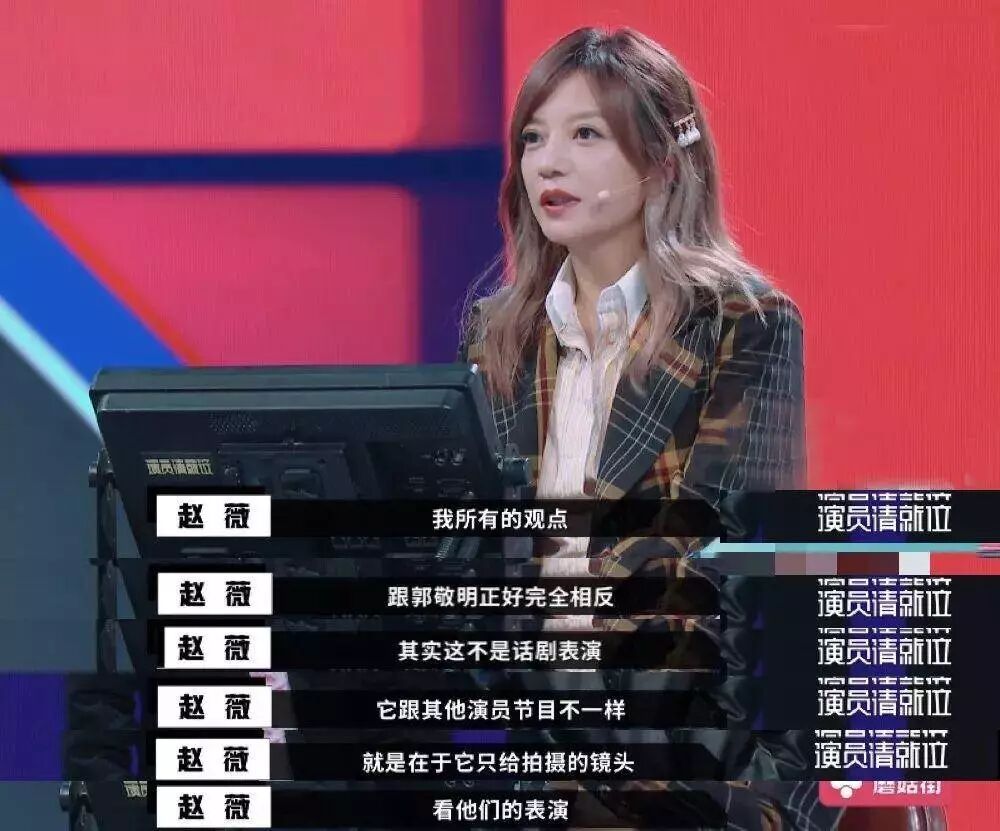 “智商高”,对演员表演的点评,不仅有自己独到的见解,更显露出扎实的专业功底。 面对郭敬明对演员明道表演的质疑,赵薇直言不讳地表达了自己不同的观点:拍摄不是话剧,重要的是给到镜头时的表现。