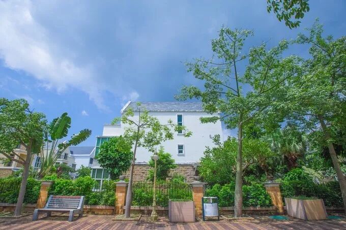 两种别墅在外观上就有很大差异, 南亚风情的小房子被各种花花草草环绕,鲜艳的热带小情怀散落在各个角落。另一边的巴登小镇则收敛很多,复古的外墙和发着暖光的小壁灯,一下子把人拉进了异国风情里。