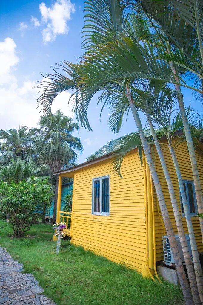 水世界里面是一排排彩色的小木屋,像是上帝打翻了染色盘,五颜六色穿插在树林里,每一栋的装饰又各不一样,仿佛走进了热带雨林。
