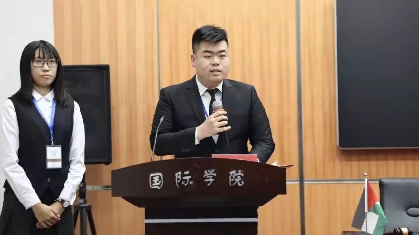 第一项,全体起立,奏唱中华人民共和国国歌。随后组委会顾问秘书长,中国农业大学国际交流协会前会长王果然代校团委邢雨凝老师发言并就青年外交官主题进行发言。他向同学们阐述了本次大会目的及对同学们的期望。
