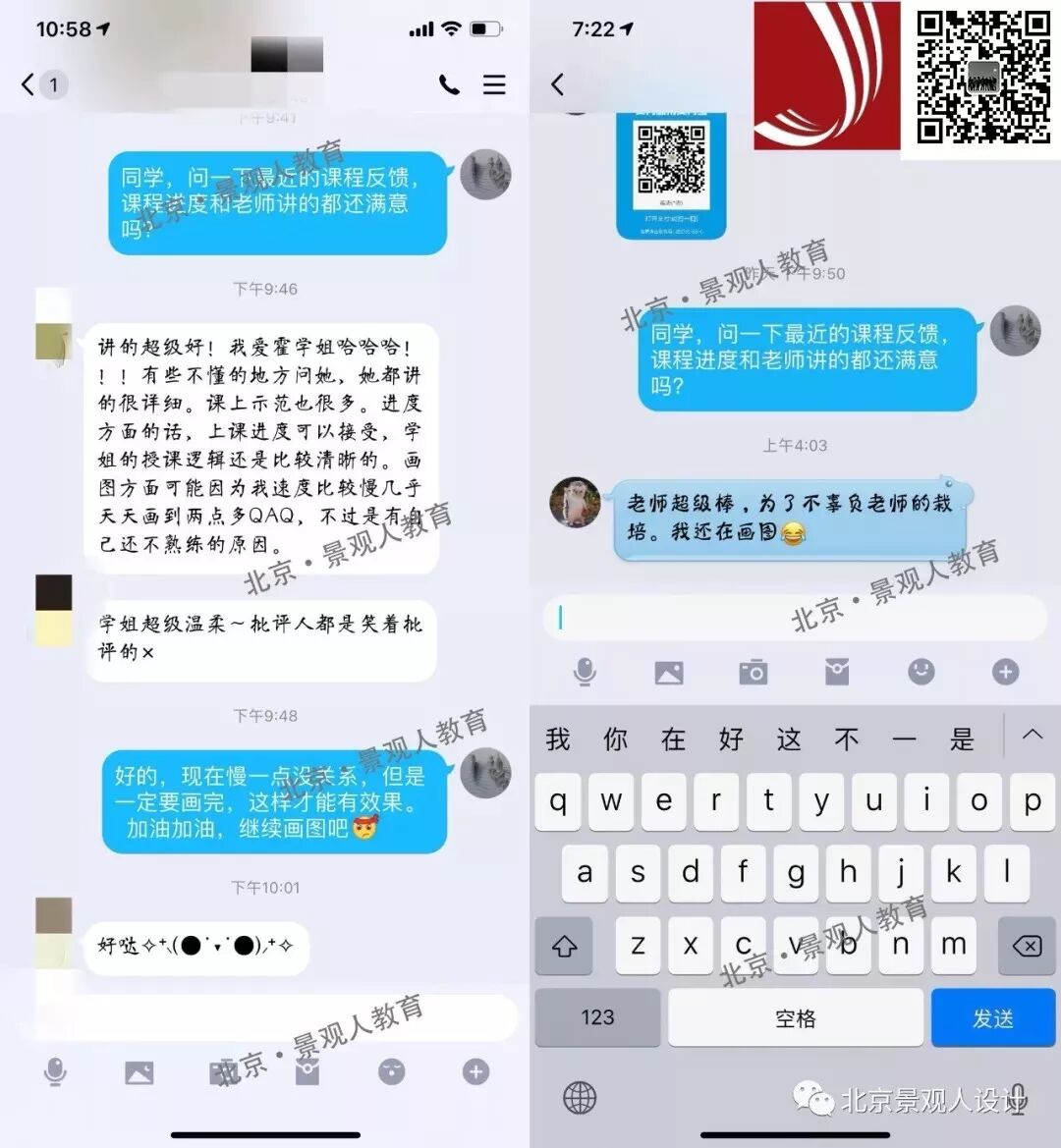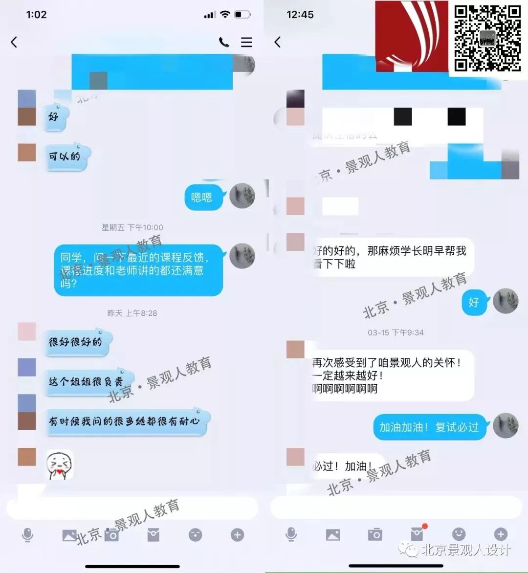 授课方式分为面授和网课,面授班每班控制在8-10人,网课班控制在5-7人。内容无差异,不能参加面授的同学,景观人线上课程是你不二之选,课上跟直播,课下提供大家录屏,可再观看两次,巩固课上知识~~~