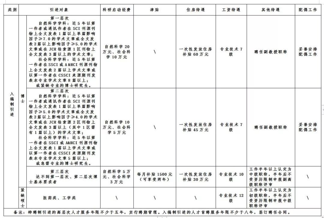 二、住房补贴及人才待遇第一层次人才:购房补助50万元,每月人才津贴6000元。第二层次人才:购房补助40万元,每月人才津贴5000元。第三层次人才:购房补助30万元,每月人才津贴4000元。第四层次人才:购房补助20万元,每月人才津贴3000元。引进人才在管理期内按月发放人才津贴,直至3年管理期结束。