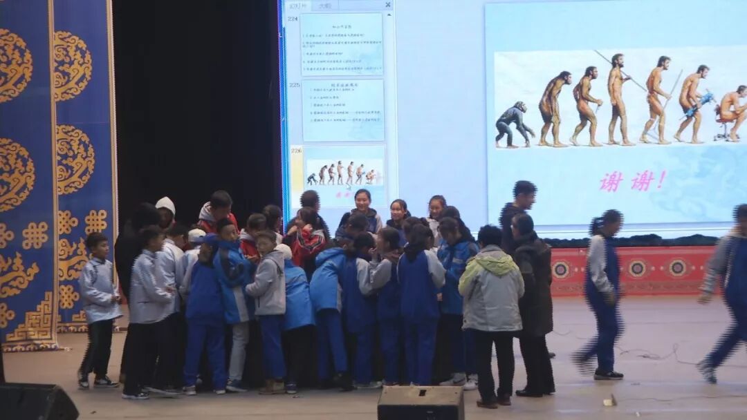 讲座结束后,展开了知识问答互动活动,李超荣老师向学校和旗科协赠送了书籍、让学生们近距离接触了古人类使用过的石器工具、用石刀切割绳子。学生们踊跃回答问题,积极参与。此次讲座也激发了所有参训人员对了解远古人类生活的浓厚兴趣。