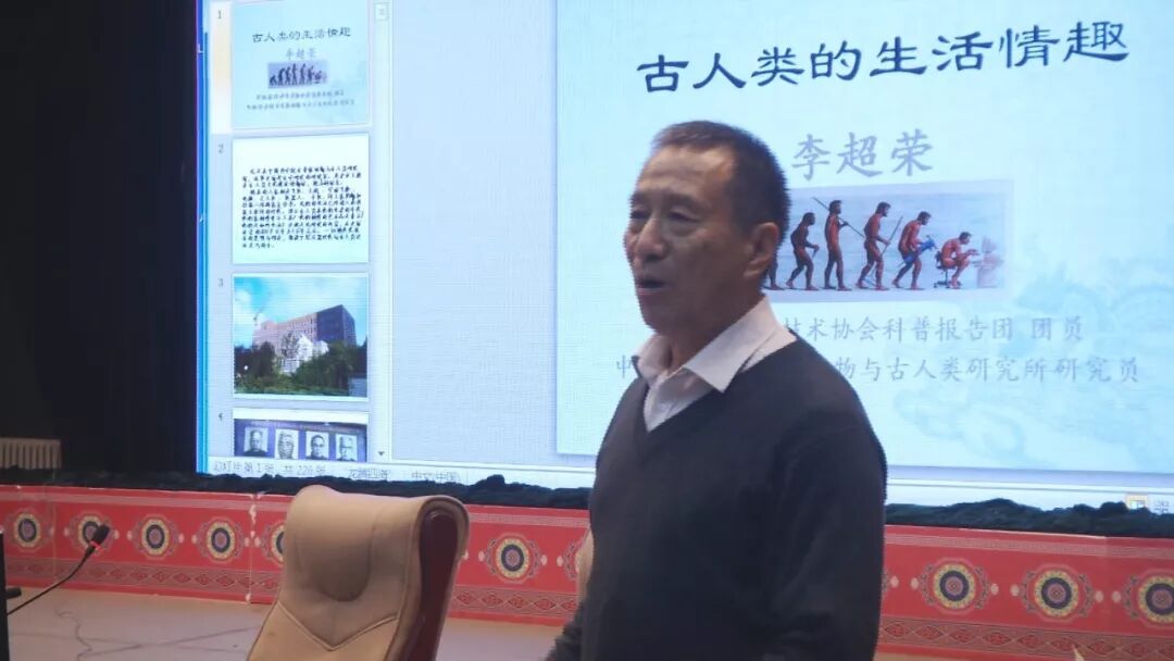会上,中国老科学技术协会科普报告团团员、中国科学院古脊椎动物与古人类研究所研究员、硕士生导师李超荣作了题为《古人类的生活情趣》专题讲座。通过生动的语言向参会人员讲述了我国考古团队在全国各地的调查、发掘和研究,发现的古人类的活动历史。