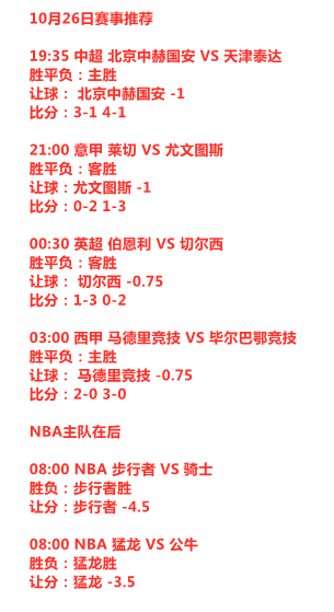 千呼万唤!众望所期!桑巴队长来咯!嘻嘻!先祝大家周末愉快哈!这样一个清爽怡人的周末,桑班队长带着满满的红单,赤裸裸的赴约来啦!最近一直私信给桑巴队长,要求桑巴队长露面的伙伴们,大家好哈!桑巴队长来啦!本周桑巴队长目前为止带给大家的5天推荐,还是全红的状态哈!今天咱们继续咯!今天桑巴队长给大家带来了6场比赛推荐哈,而且作为礼物,全部都免费发给大家哈,一起看看桑巴队长的命中率如何哈!今天公推是一场,然后另外的5场赛事推荐,桑巴队长放在了文末哈!先来关注今天的公推!