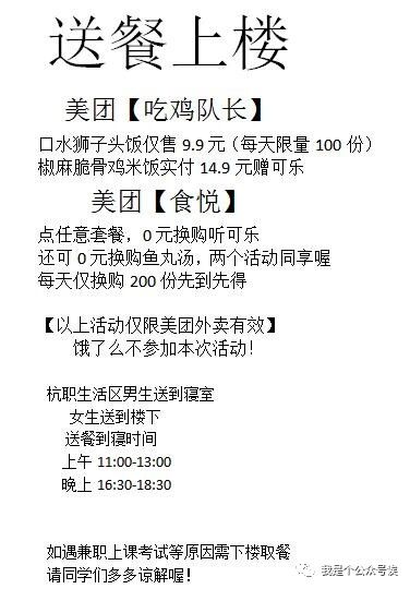 寝室享受 新外卖!美团/饿了么 搜索:食悦吃鸡队长享受9.9套餐福利 数量有限