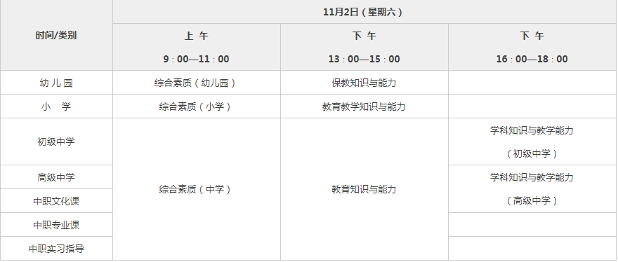 11月2日 就是真正上战场的时间惹,考试具体时间分布: