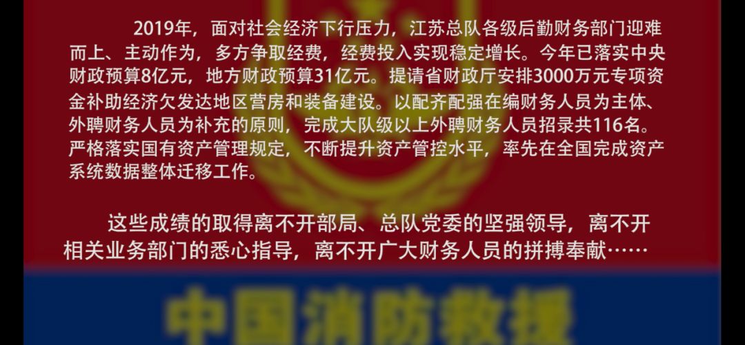 为进一步加强全省消防救援队伍改制转隶期间财务管理工作,检验全员岗位大练兵成果,不断提升全省财务人员业务水平。10月24日,全省消防救援队伍财务管理现场会暨财务业务比武竞赛在南京支队江宁大队隆重举办,部消防救援局刘伟民高级会计师、总队周详总队长、封力军副总队长、后勤部陈立新部长、南京支队陈海华支队长、孙山政委出席活动,全省各支队后勤处长、大队主官代表以及全体财务岗位人员参加。此次比武竞赛是消防救援队伍转隶后首次全省财务业务大比武,周详总队长、梁新国政委亲自审定活动方案,多次听取筹备情况汇报并对具体内容提出明确要求。