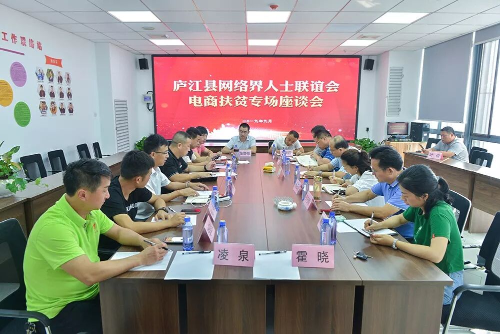 9月12日,庐江县网络界人士联谊会组织召开电商扶贫专题座谈会。会议由会长汪国志主持,网联会部分班子成员和庐江电商企业负责人代表参加了此次会议。会议特邀县委统战部、县工商联、县商务局和县农业农村局负责同志莅临指导。