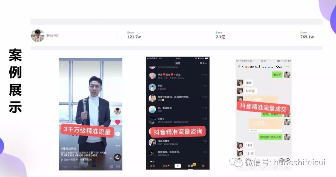 二、主讲老师 启程老师,小浪花ceo,抖音、快手MCN机构负责人。公司旗下全网粉丝量4000w+,珠宝垂直粉丝300w+,创造多次千万级爆款视频,珠宝单个视频涨粉超30w。