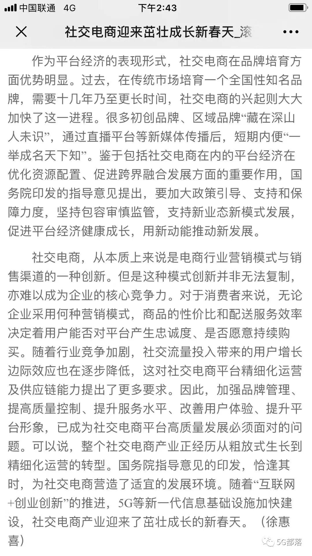 大家看一下,这个是8月14号,中华人民共和国中央人民政府发了一个文,给予了社交电商这个新兴的行业充分的肯定,从来都没有过政府给一个新兴行业,这么高的一个评价,我相信大家也是没见过。为什么呢?因为咱们这个新兴的项目,可以解决很多社会问题,解决很多的就业,可以拉动内需,可以拉动消费,好处太多了。