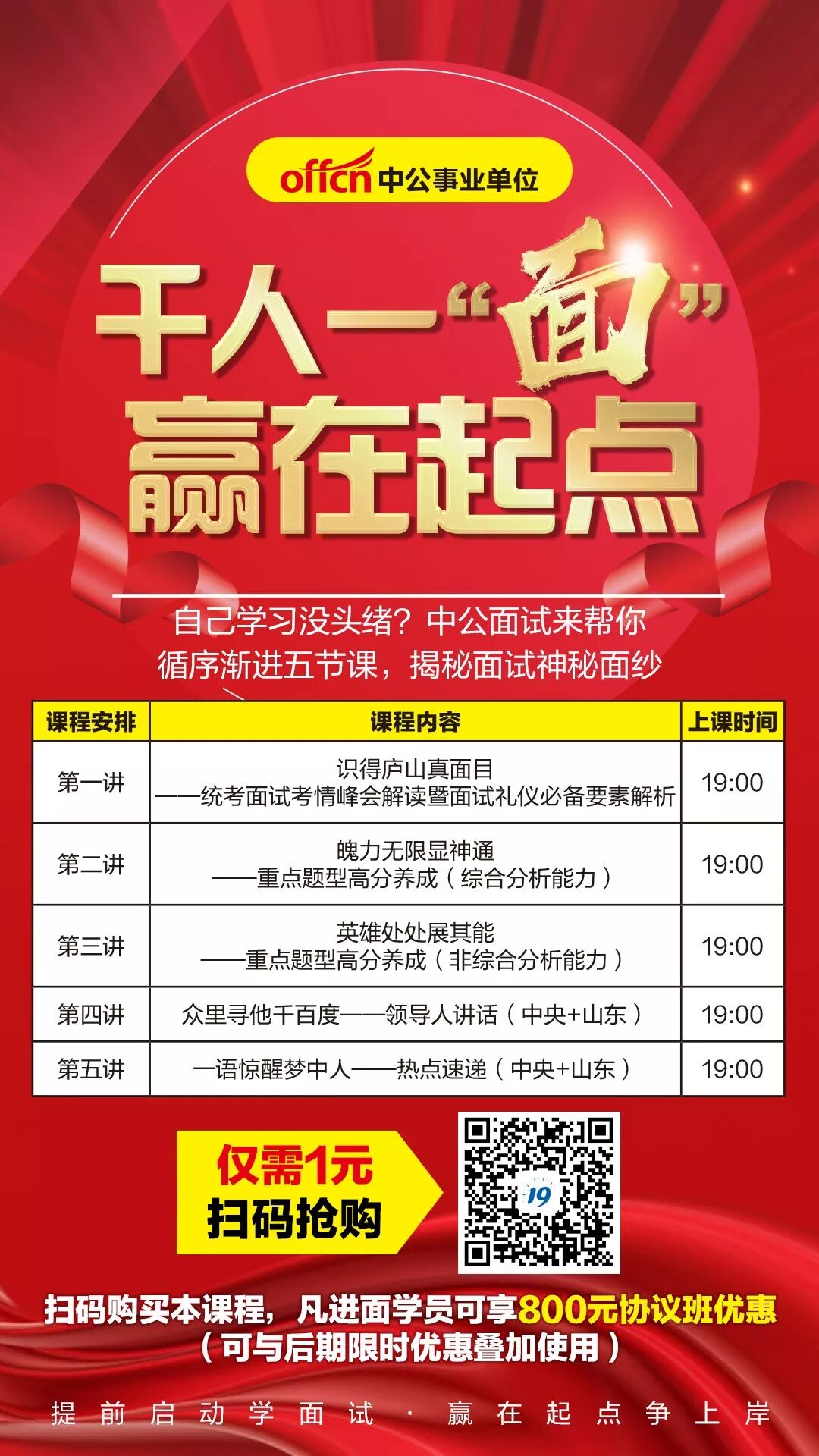 等成绩?你的对手已经开始准备了!△了解面试考情根据各地市发布的招聘公告,考试总成绩按笔试与面试成绩各占50%的比例进行计算。此外,面试应体现岗位特点和专业要求,可采用专业测试、结构化测试、答辩及实际操作等多种方式组织。面试成绩采取百分制计算。按照往年的面试考情,综合类岗位一般采用结构化面试的形式进行考核。△要想上岸稳,面试需要提前学起来帮助各位小伙伴抓住这次上岸的机会兔仔为大家准备了了统考面试提前学系列只需要1元,你就能得到:面试考情解读+面试题型解析+重点题型训练+面试热点速递+...如果进面,还可以享受800元协议班的优惠!不要再干等了,赶紧上车吧!