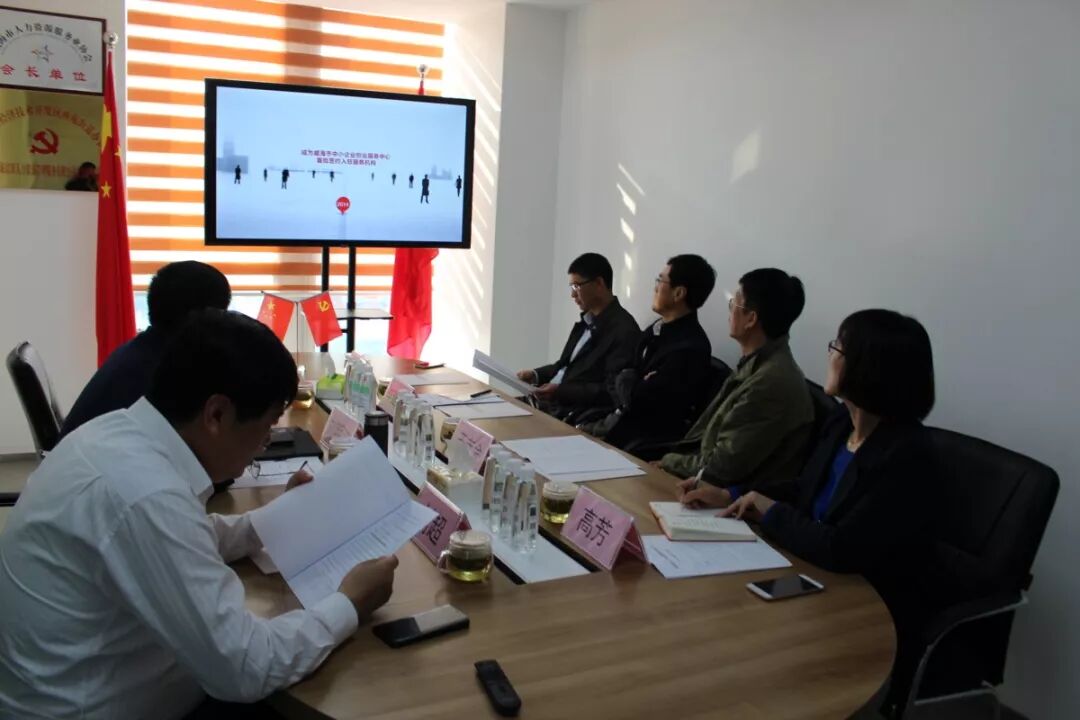 王吉会主任等一行首先参观了富田公司办理业务的工作现场,富田公司总经理助理孙文涛对现场进行详细讲解,威海市人力资源公共服务中心副主任毕建品同志向办理人员亲切询问,详细交谈了解考务报考流程、入职办理流程等,并对办理业务事项作出指导性意见。