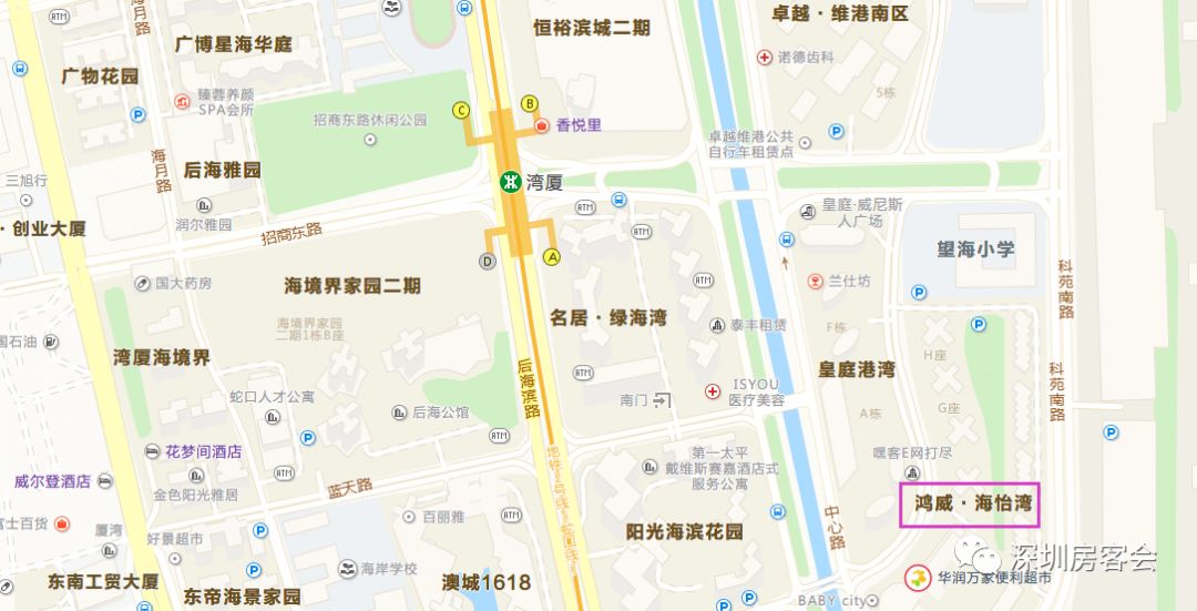 二、地处深圳湾核心地段,临近宝能all city购物中心、深圳湾滨海公园,步行5分钟可到2号线湾厦站,附近有恒裕滨城二期商业中心和在建海境界二期商业中心。