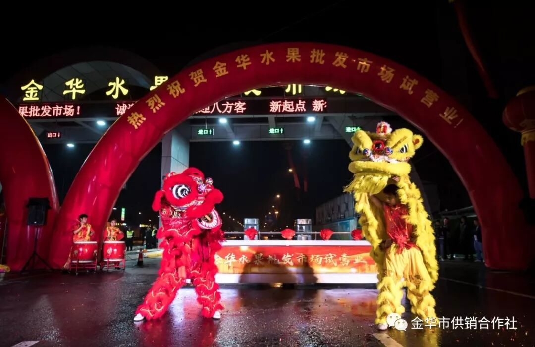 华东金华农产品物流中心舞狮欢腾、普降福雨,市供销社领导、市场工作人员、经营户、客商代表齐聚华东金华农产品物流中心正门,举行简短隆重的华东金华农产品物流中心营业启动仪式。