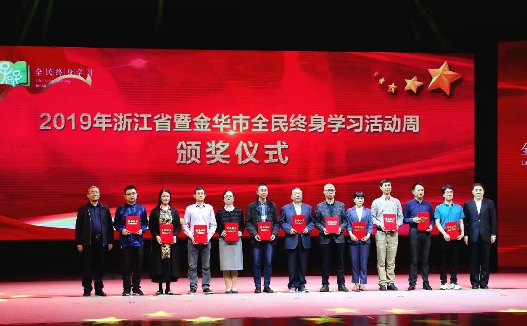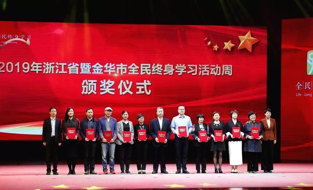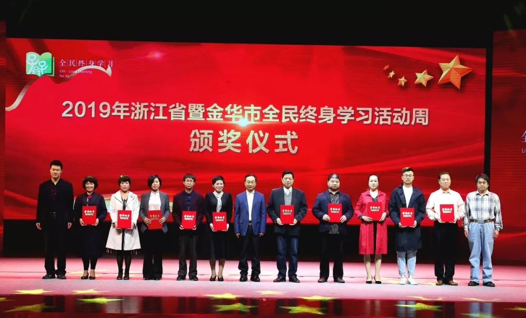 启动仪式上隆重表彰了2018年全国“全民终身学习活动先进单位”、2019年浙江省“终身学习品牌项目”、2019年浙江省“百姓学习之星”、2019年金华市“百姓学习之星”先进代表。