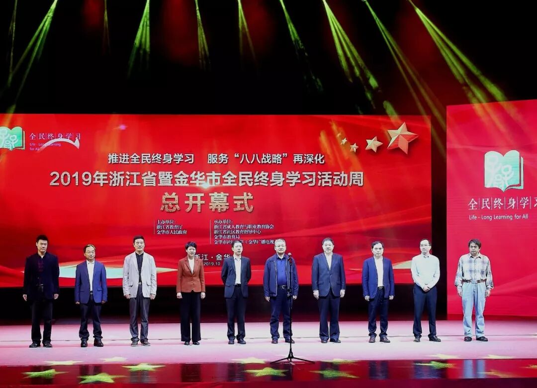 10月26日,2019年浙江省暨金华市全民终身学习活动周在中国婺剧院拉开帷幕。本次活动周以“推动全民终身学习,服务“八八战略”再深化”为主题,由浙江省教育厅、金华市人民政府主办,浙江省成人教育与职业教育协会、浙江省社区教育指导中心、金华市教育局和金华市社区大学(金华广播电视大学)共同承办。
