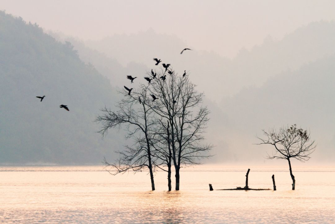 通济湖,既是一个湖,也是一个饮用水水库。通济湖不大却是当地摄影师的心头爱。它最美的时候,莫过于早上蕴藉在湖面的晨雾,日出时打着微薄的红光,有点儿像仙境,美得不太真实;或者伴着晚霞,一叶扁舟伴着将至的夜色从远处缓缓归来的画面。